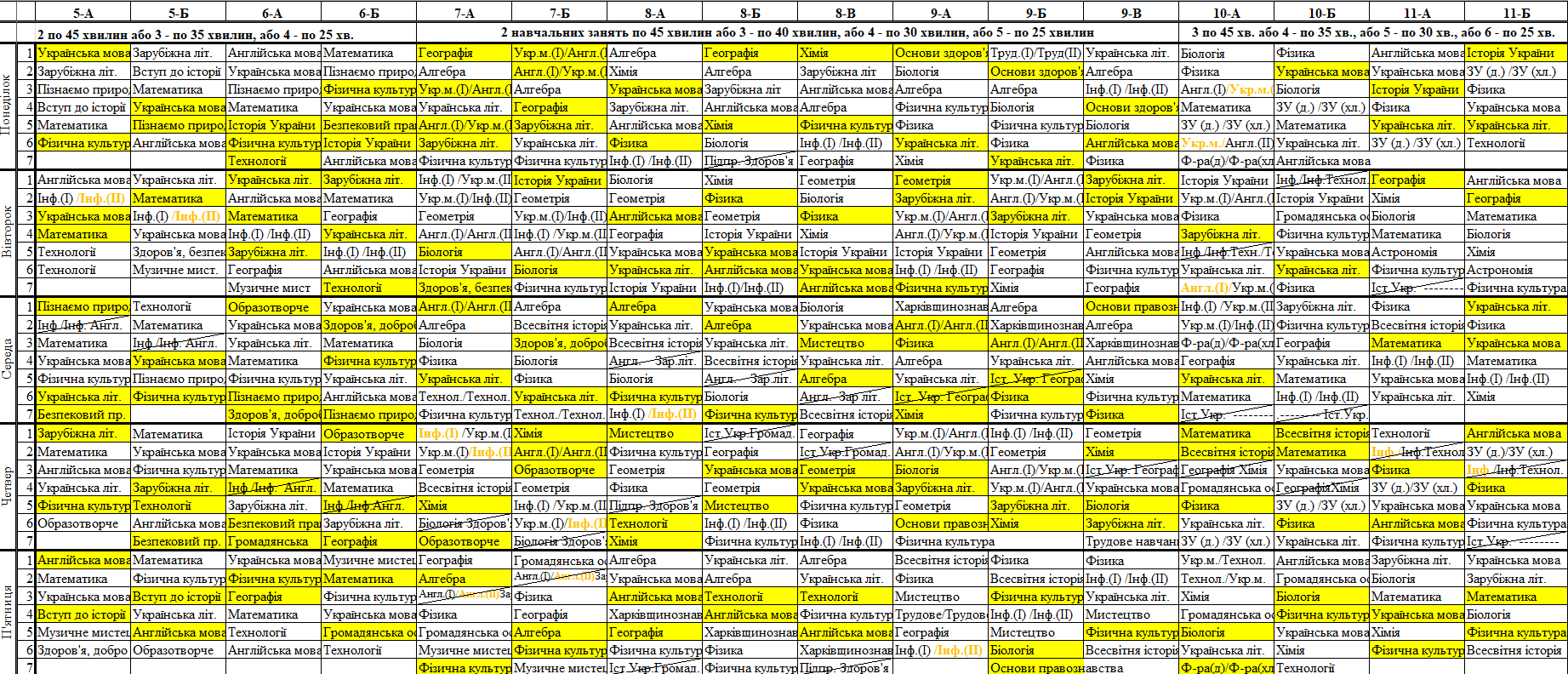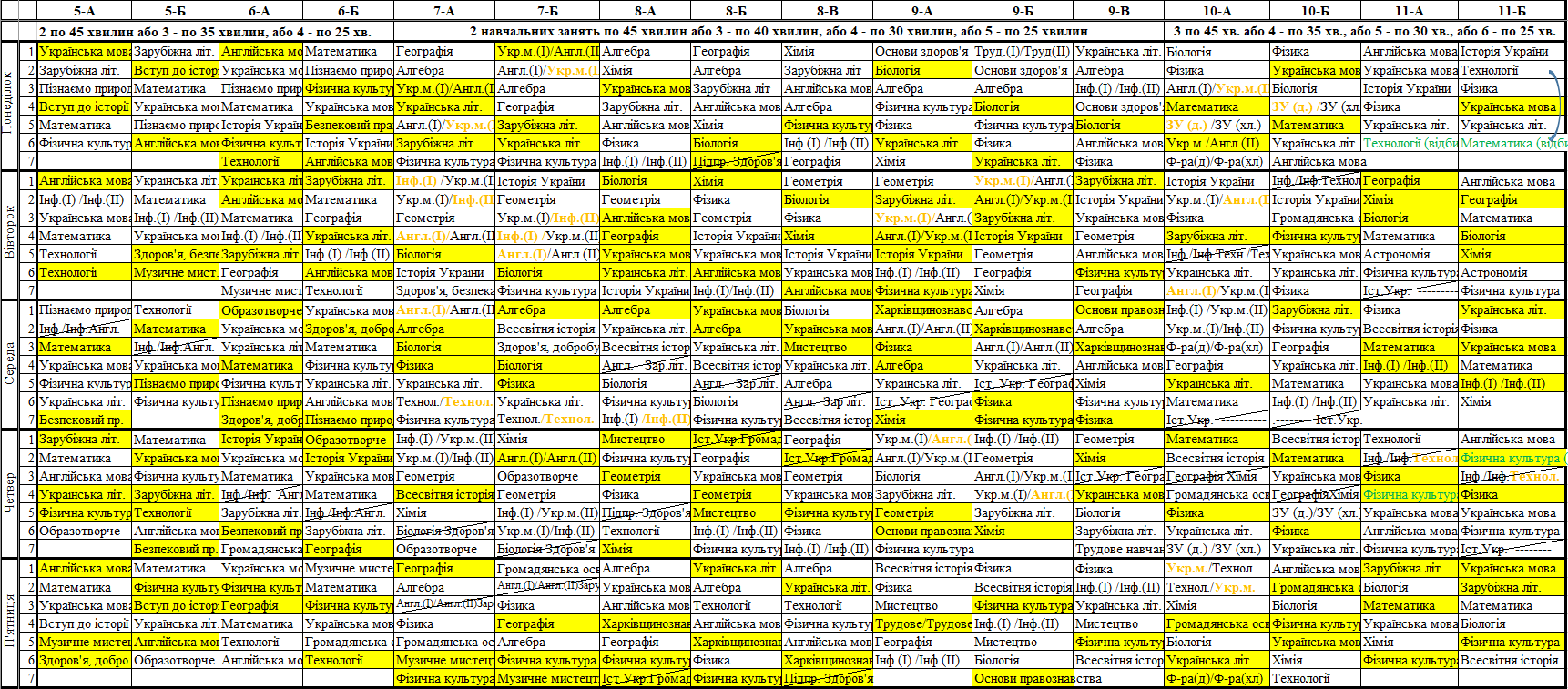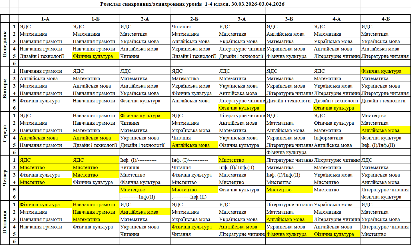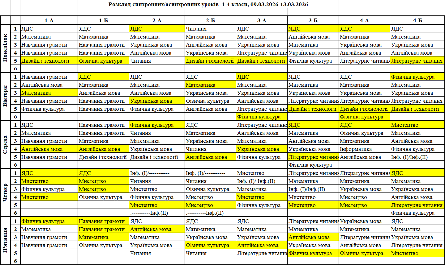 Розклад синхронних/асинхронних уроків для 5-11 класів
