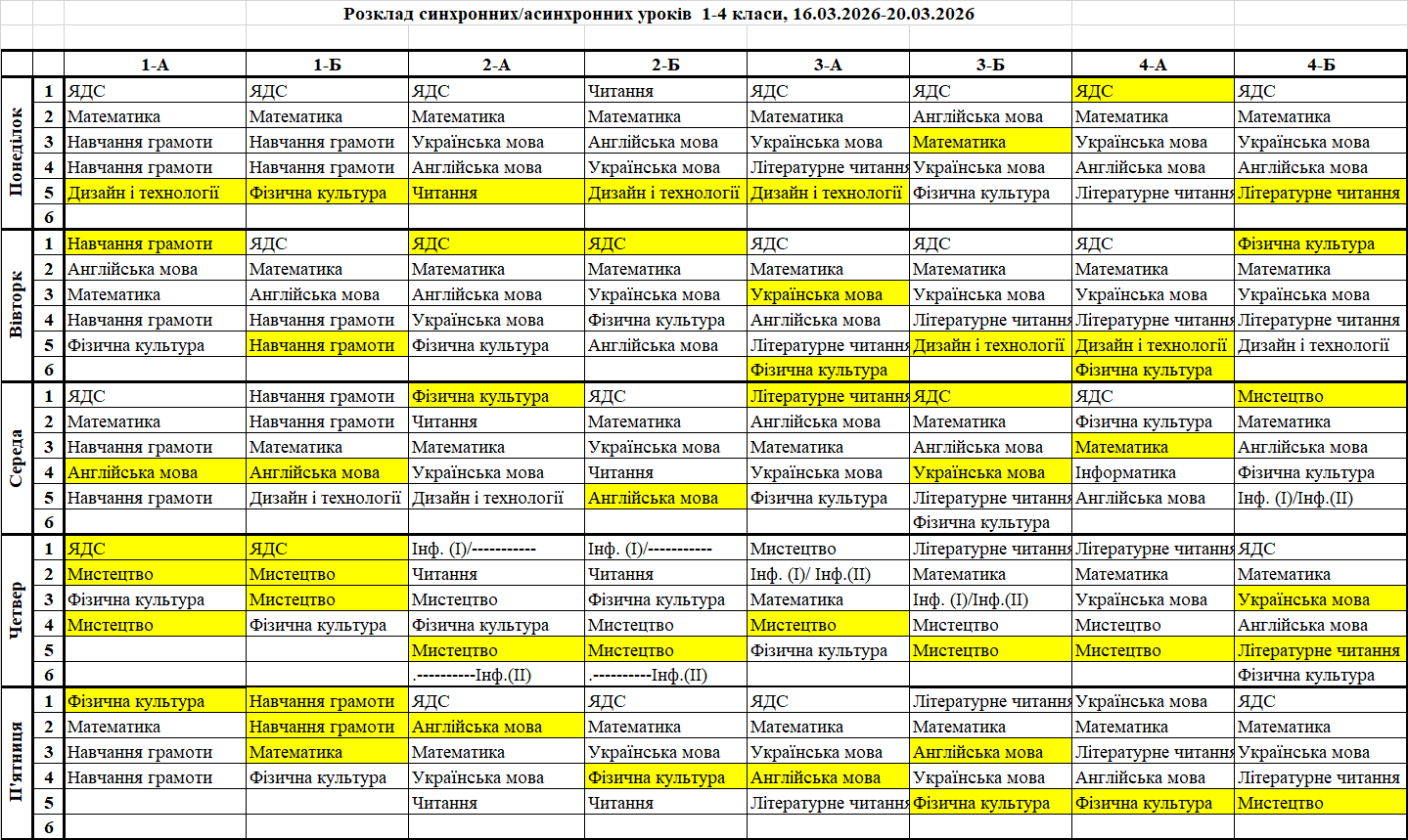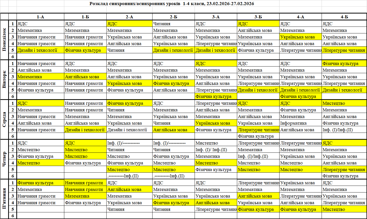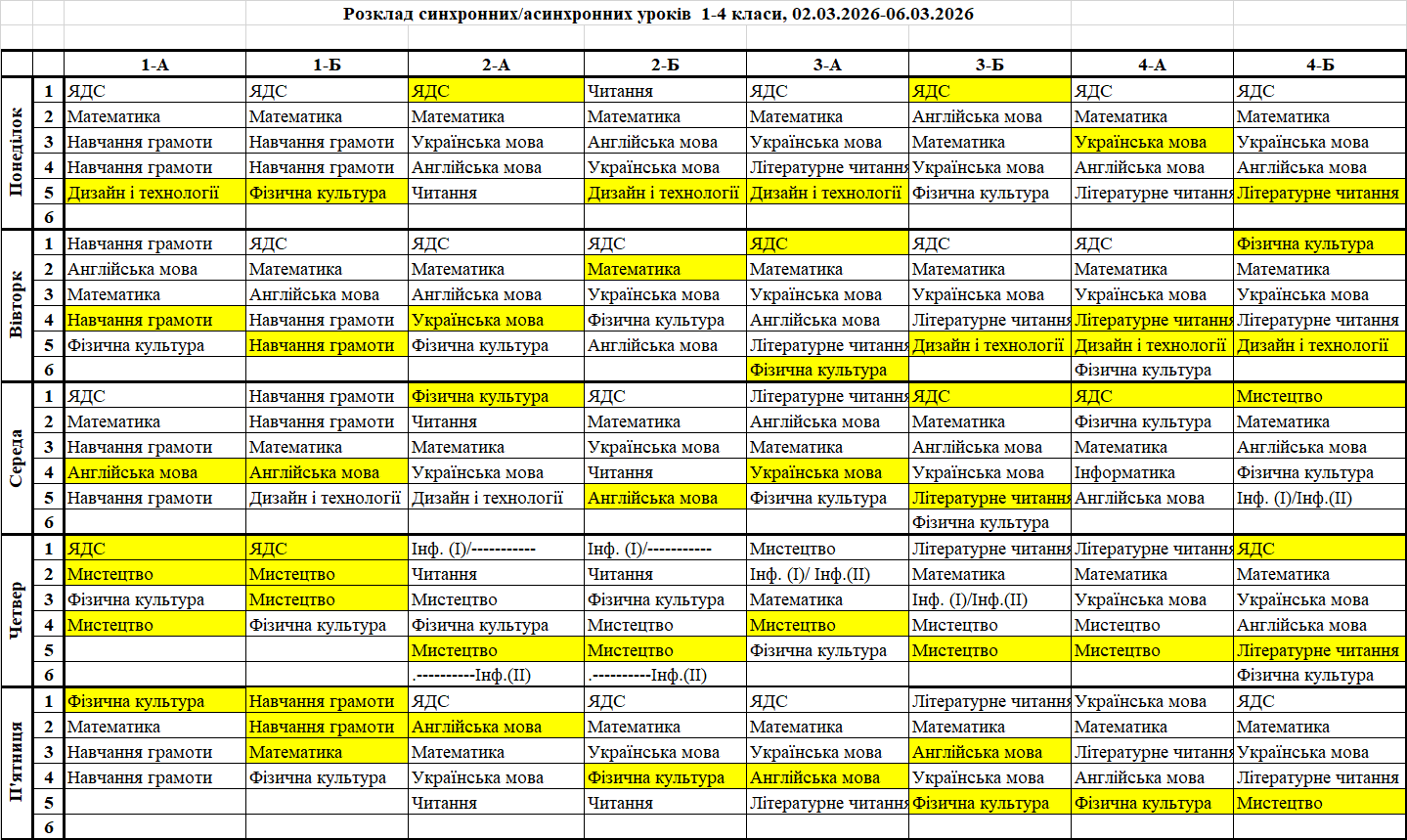 Розклад синхронних/асинхронних уроків