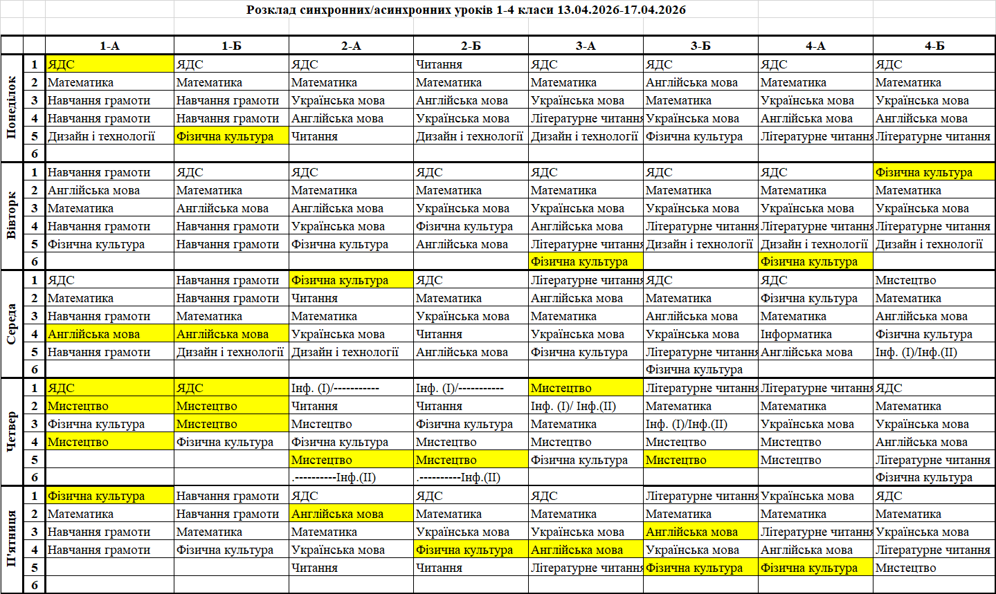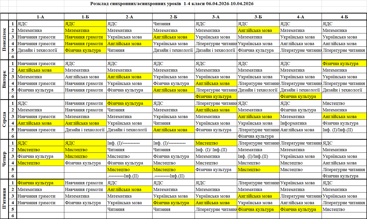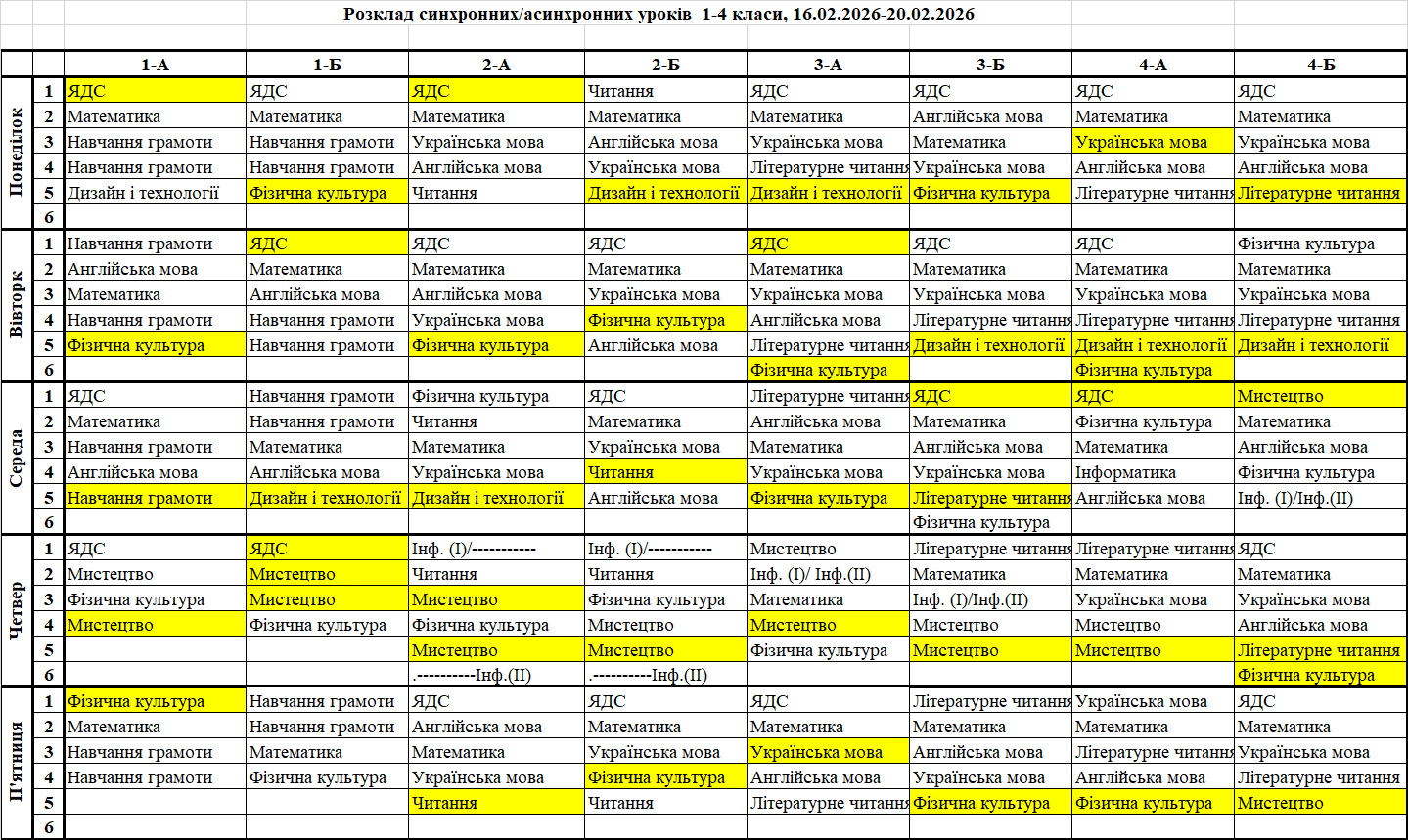 Розклад синхронних/асинхронних уроків
