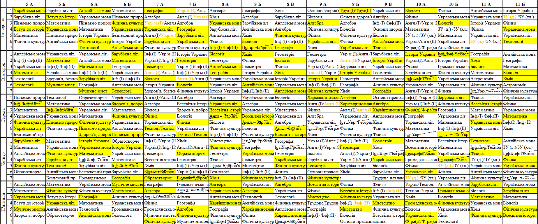 Розклад синхронних/асинхронних уроків для 5-11 класів з 25.11.2024 по 29.11.2024: